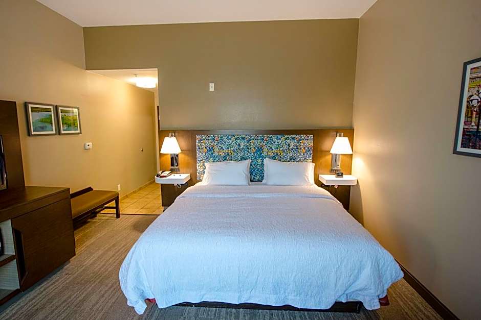 A seating area with a sofa bed and 2 flat-screen TV's are featured in this suite. It also has a wet bar, microwave, and refrigerator.